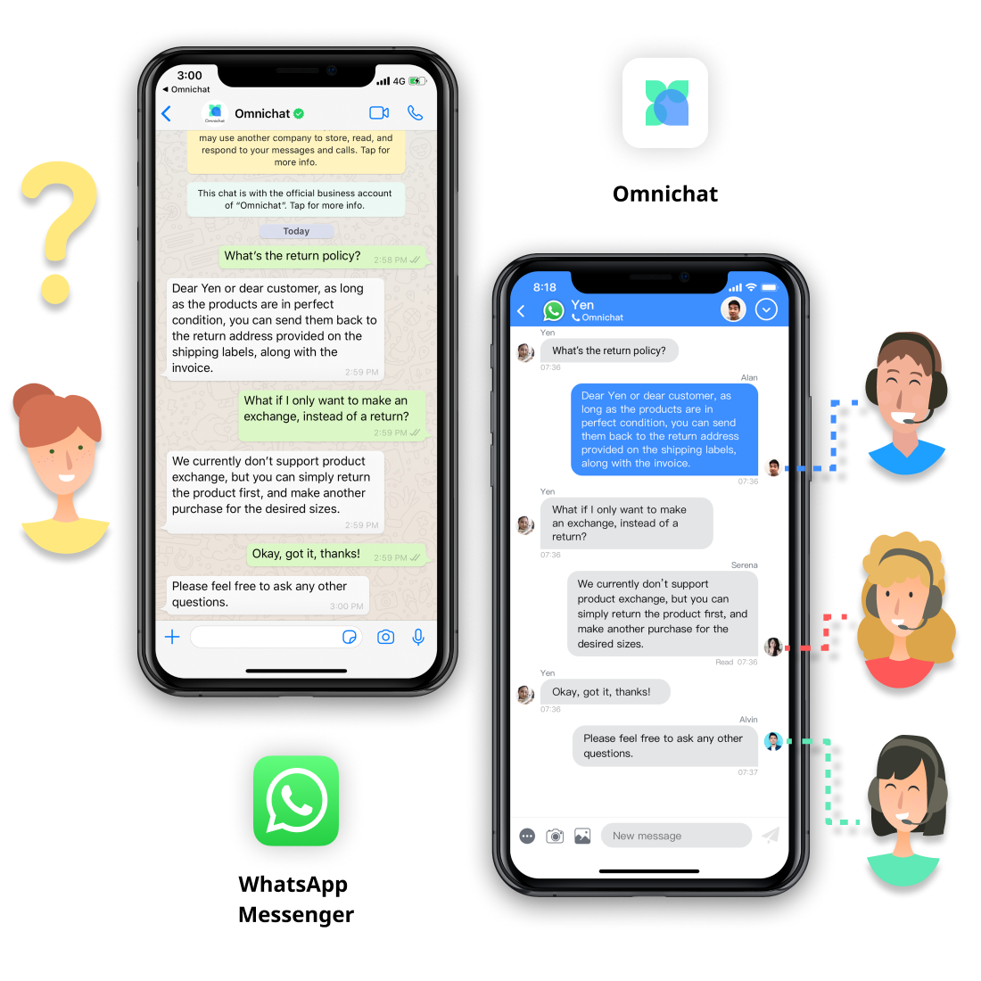 Using WhatsApp Business API to connect users, brands & companies can enjoy team collaboration on both sales and customer service, as well as automatic reply like chatbot features.
