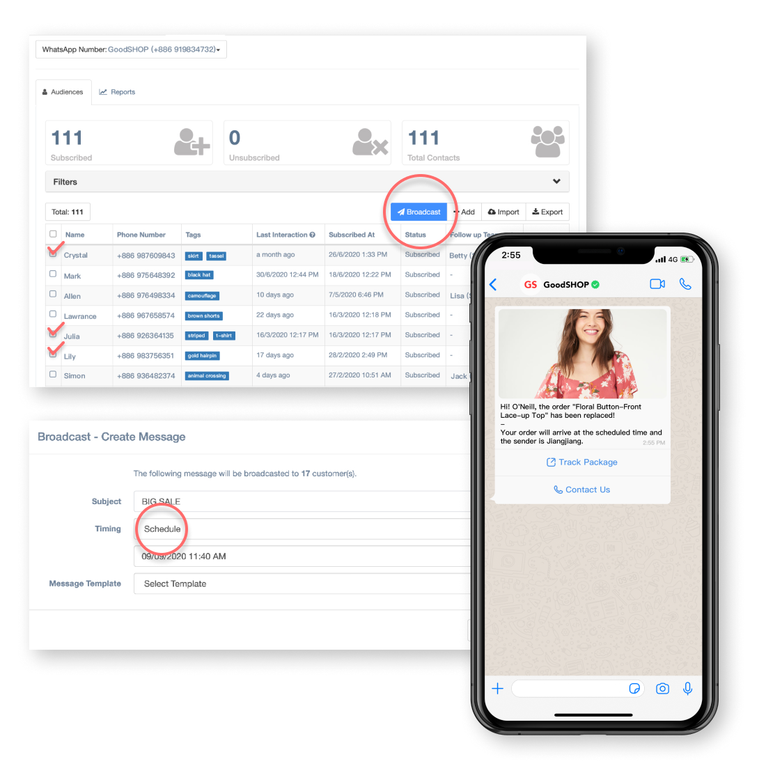 With SUP RETAIL, you can schedule and send broadcast message, such as event notifications, arrival notifications.